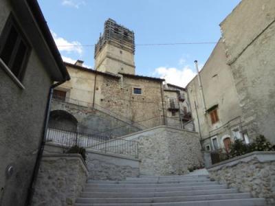 アブルッツォ州の「カステル・デル・モンテ」のシンボルである古城の塔は復旧工事中