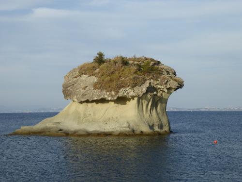 沖合にはラッコ・アメーノのシンボル「フンギの岩」。