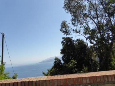 360度のパノラマで、南は断崖絶壁、北東にはアマルフィ半島、北には優美な姿のヴェスビオ火山、西にはイスキア島。