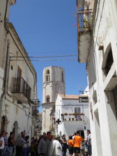 大聖堂「Santuario di San Michele Arcangelo」のカンパニーレが見える。