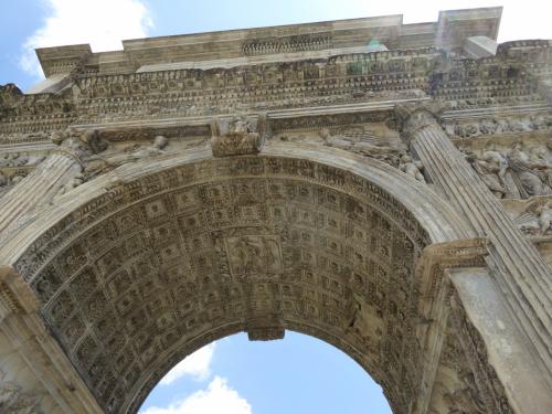 古代ローマの凱旋門で保存状態は良好で、細かい装飾がびっしりと見事です。