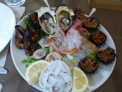 @海の幸盛り合わせ:怒涛の新鮮魚介がいっぱいで驚く。