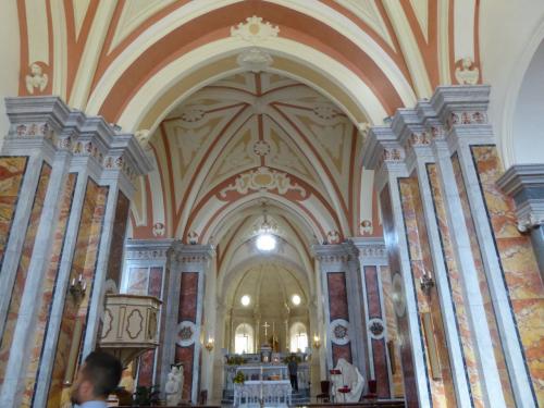内部も小さいものの色大理石を見せかけた装飾もあり、