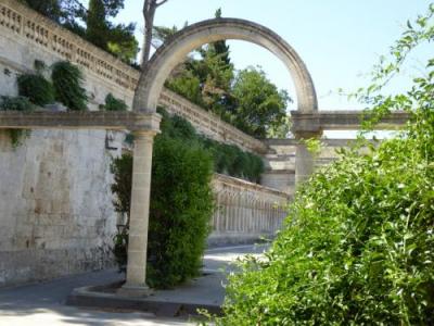 見事なフランス式庭園の迷路式で円形の塔を持つアラゴン城の景観が素晴らしいです。