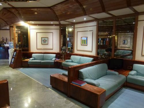 総革張りのソファが配置され、壁には鏡を多用して優雅な雰囲気。