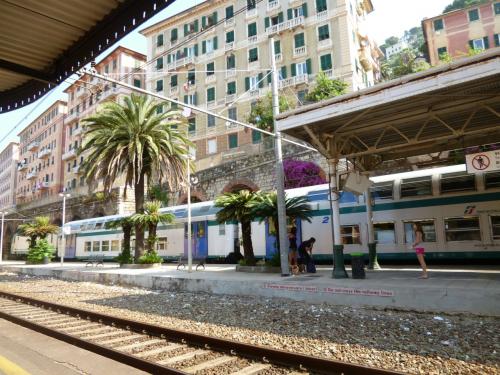 ジェノバ方面から到着する列車はたくさんの海水浴客が降りて