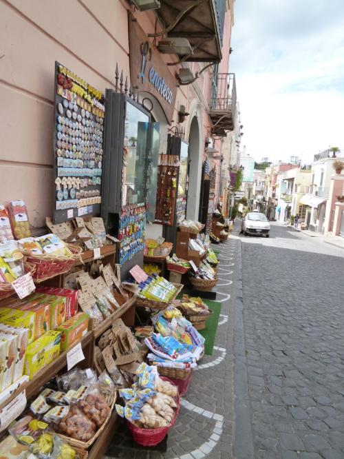Via Vittorio Colonnaはイスキア島ポルトのメインストリートでたくさんのショップがひしめき合います。