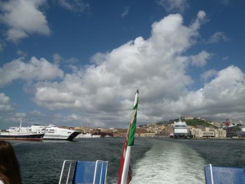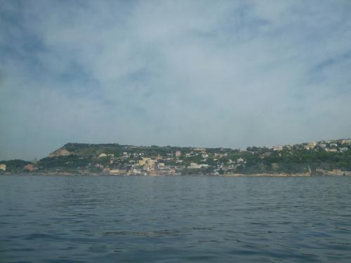 ミラッツォ港で高速船を待つ間に周囲の風景を楽しめました。