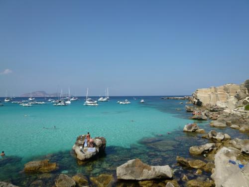 ファヴィニアーナ島のカラ・アズーラはマルサラを眺めながら遊泳できます♪