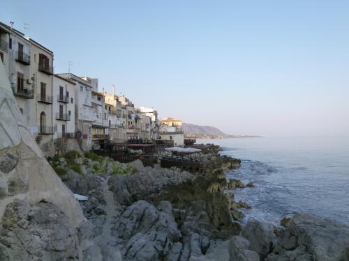 海岸に出ると左手に海岸にまで迫ったチェファルーの街並みを眺められます。