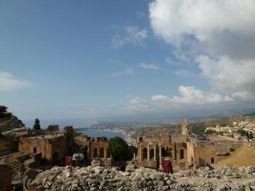 ギリシャ劇場は席段および舞台の保存状態が良く、周囲の絶景が素晴らしい。