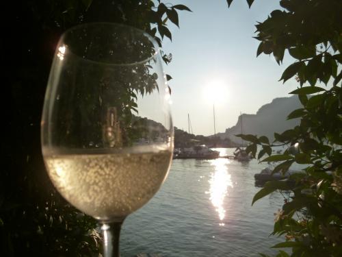 レストランから海峡の向こうにポルトヴェネーレを眺めることができる。