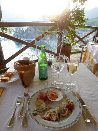 先ほど観光したポルトヴェネーレを眺めながらディナーを楽しめるとはとても贅沢。