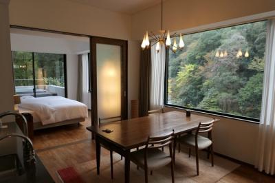 渓谷に沿った奥行きの広がる客室で、