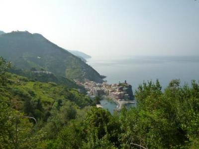 モンテロッソ旧市街のメインストリートを山側へ終点が送迎の場所。