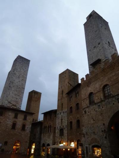 チステルナ広場はたくさんの塔を見ることができるスポット♪早朝と夕方以降がおススメ♪