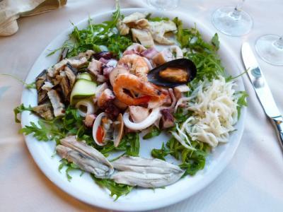シーフードのリゾット:魚介の旨味が濃厚で素晴らしい。米はアルデンテで問題なし。