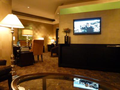 VIPルームはコスメ売り場の奥にあり、ソファやテレビなどが置かれ、休憩できます。