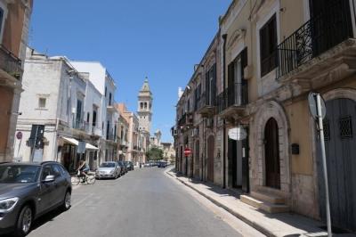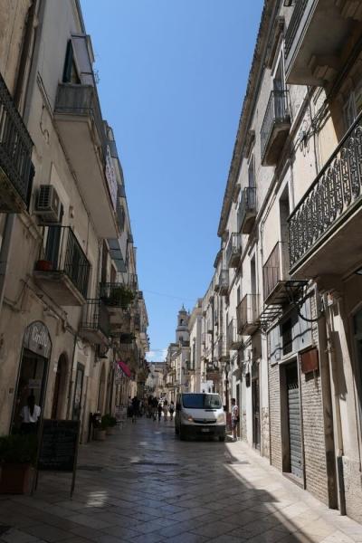 北門であるバーリ城門から南へほぼ南北の通りがメインストリートでドゥオーモ広場を挟んで北側が「Corso Federico II di Svevia」、