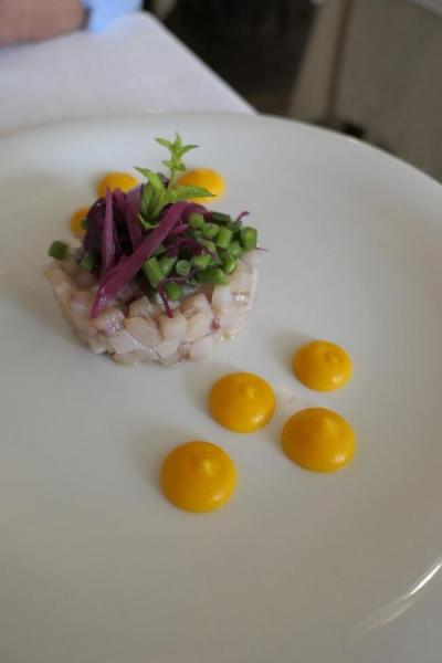 @前菜:カジキマグロのタルタル ニンジンピューレソース