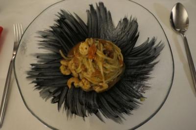 @パスタ:ウニとガンベロロッソのスパゲットーニ カラスミかけ