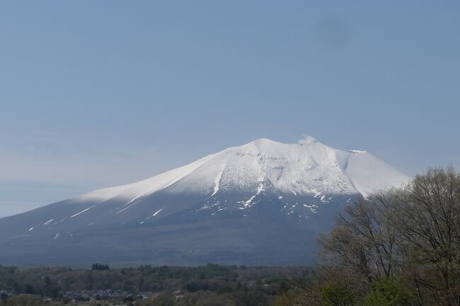 鬼押し出しから季節外れの新雪を被った美しい浅間山。