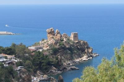 ミラッツォ方面からチェファルーへ海岸に沿って走行すると岩山に当たります。