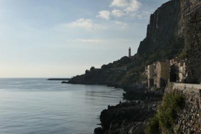 岩が連なる岬の上に小さなトッレ(見張りの塔)が立ち、