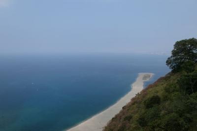 眼下に美しい砂の州が広がり、
