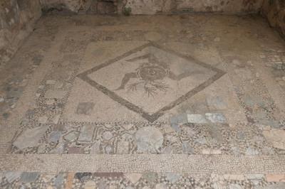 住居ゾーンへ行くと床にはたくさんのモザイク画が残されている。