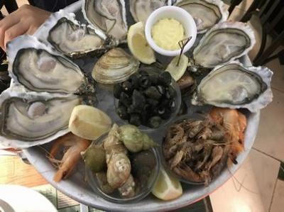 牡蠣、海老、貝などたっぷりとのったプラッターを