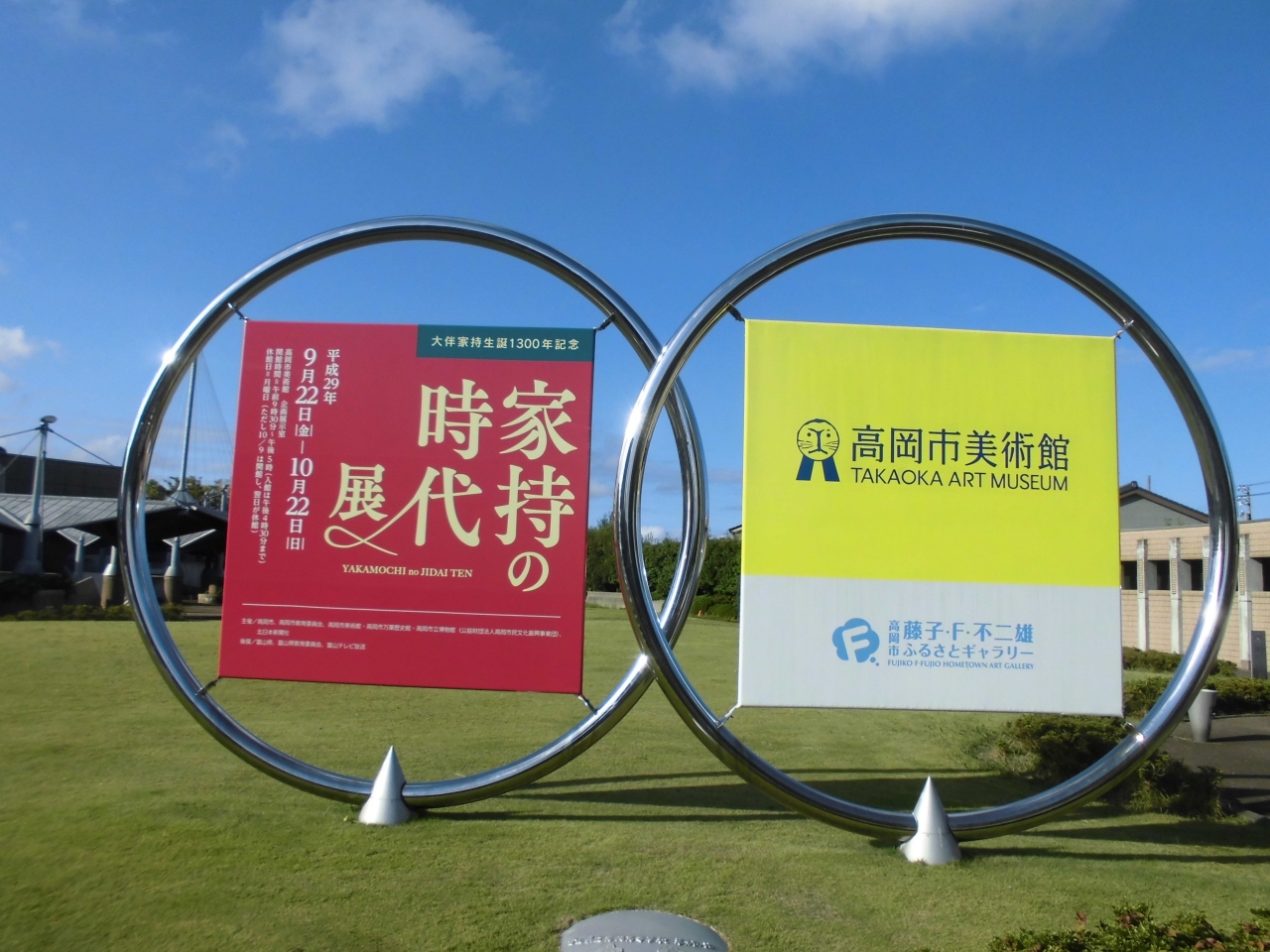 ドラえもんに次ぐ高岡駅前第2の有名人の像です。実は家持は高岡に赴任したことがあり、その縁で建てられたものです。家持だけでなく他に2人の像(家族?)もありました。筆を持っている家持はきっとここで歌でも詠んでいるのでしょう。