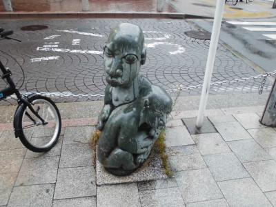 麻布十番にある芸術作品です。この作品はジンバブエの芸術家が作ったものです。ジンバブエとは現地語で石の家という意味なので石を使ったのかもしれません。猿のように見えますが、デフォルメされた猿のような像でした。