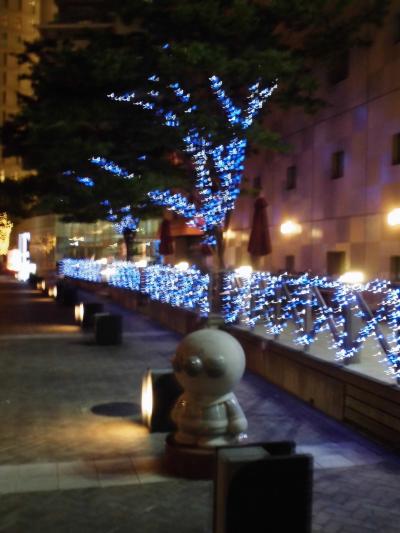 アンパンマンの像がたくさんあるこの道ですが、夜には樹木に付けられたLEDが青や白に光って実にきれいにしてくれます。なので昼に行くよりも夜に行ったほうがいいと思います。アンパンマンの像が見にくいのは難点ではありますが。