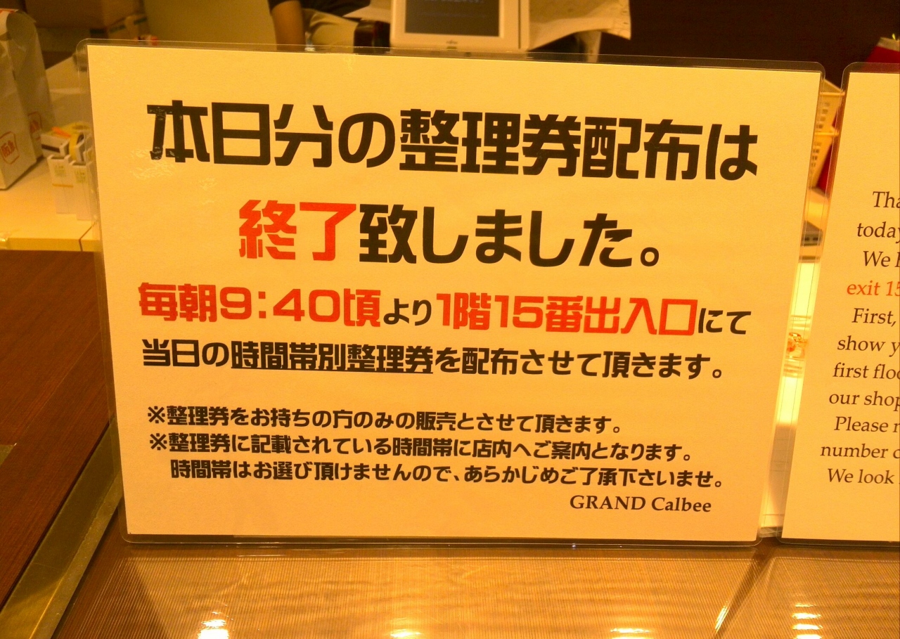 関西に旅行するときに頼まれたのがここで打ってないグランカルビー。最初に行ったときはすでに売り切れで、整理券が必要なことすら知らなかった状況でした。翌日に並びなおしてようやく手に入れられました。本当に苦労しましたが、それに報いる味だったと思います。なので並ぶのが苦にならない人が買った方がいいでしょう。
