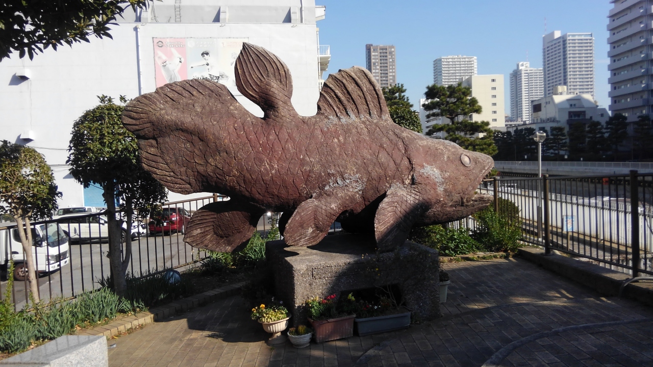 小名木川のほとりにあり、西深川橋脇にあります。GOMBESSAと書いてゴンベサと読みますがこれはシーラカンスのこと。シーラカンスが生息する地・コモロのことばで幸運と言う意味だそう。造形は幸運そうには見えませんが、その名にあやかって幸運になりたいと思いました。