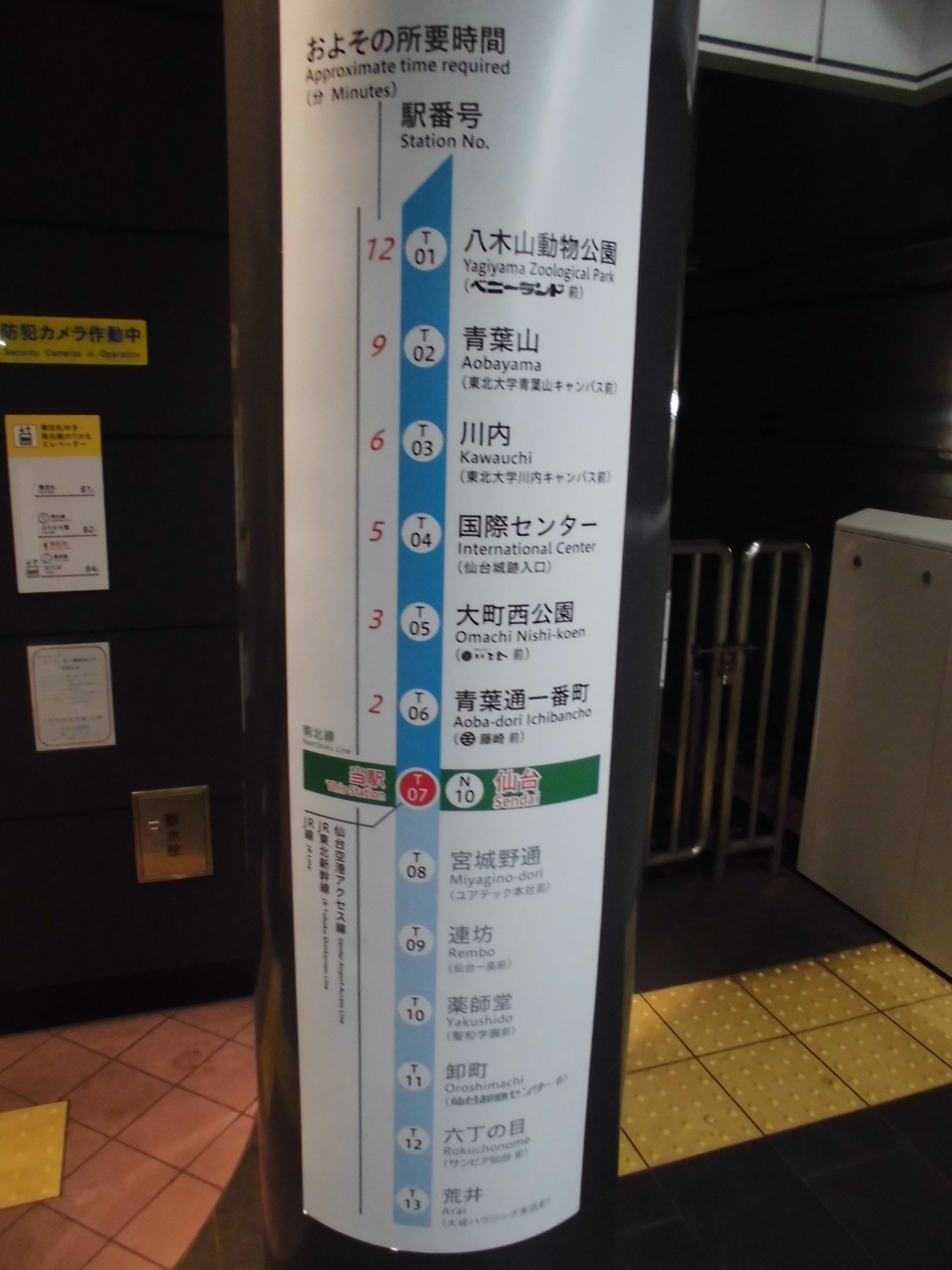 仙台市の地下鉄で仙台駅から大町西公園まで乗りました。エレベーターで結構下ったのを覚えています。大町西公園のあたりだと地下ではなくて地上からも見えるという東京の東西線と名前だけでなくこういうところも一緒だったのが面白く感じました。