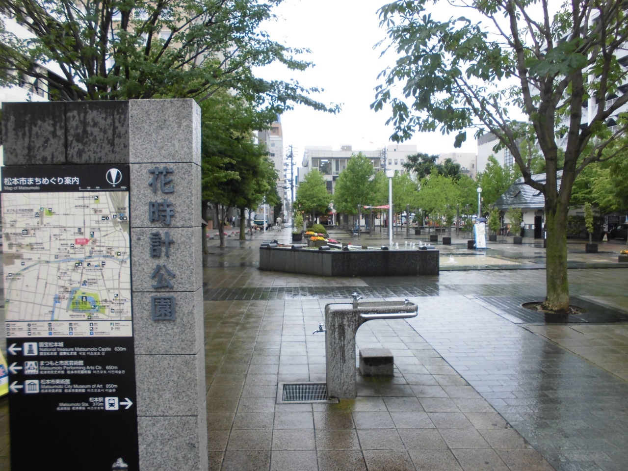 松本駅と松本城の中間あたりにある公園です。湧水が豊富な松本らしく中央部には噴水もありました。花時計という愛称は松本市が花いっぱい運動発祥の地ということと、近くに時計博物館があったからということで、そういう意味でも松本市らしいと思いました。