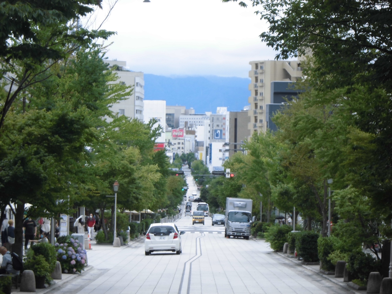 善光寺のに通じる石畳の道です。ここから善光寺が見えるわけですが、むしろ注目は反対方向だと思います。長野市街地までは下り坂になっていていい景色が見えるのです。高層ビルに上らずとも長野市街を一望できるのはいいものです。