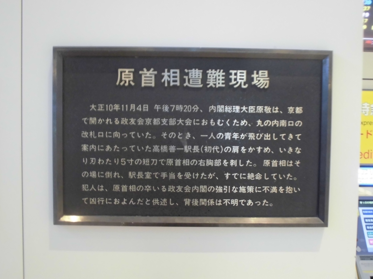 日本初の本格的な政党内閣の首相であり東京駅で殺された原敬。その現場は今でもすぐ近くにまで行くことができます。行ったのは非常事態宣言が出た4月。仕事で東京駅近くまで行ったのですが、本当に閑散としていました。あんな東京駅でじっくり見れたのはもう一生ないかもしれません。