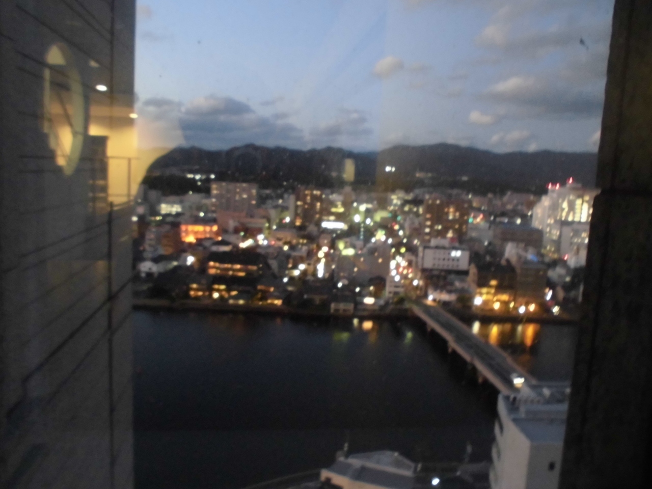 松江市街の南北をつなぐ橋で、宍道湖大橋の一つ東です。規模としてはそんなに大きくありませんが、この橋をつなぐ道は松江の中でも中心街であり、夜でも賑わいを見せています。この橋がなければ松江の交通はだいぶ不便になるので、なくてはならない橋です。