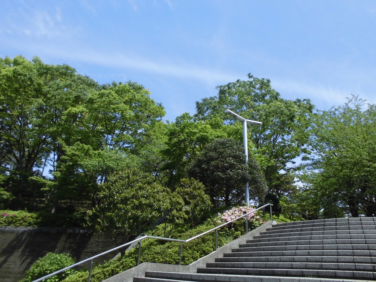 東戸塚駅から歩いていける距離にあります。駅の西口(西武のない方)を出て階段を上り、信号を渡って右に行って少し歩いて左に行くと品濃町公園です。高台にあるはずなのですが、周りが建物に囲まれていていい景色でないのが残念です。