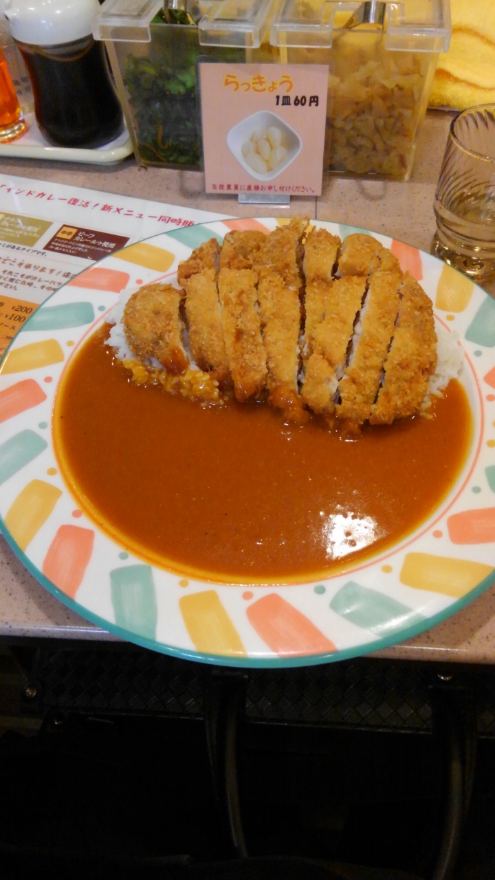 昼食を食べようとふと外のメニューを見たらチキンカツの大きいカレーがあったので気になって注文しました。実際に大きくボリュームがあって良かったです(ただご飯は少なかったです)。店員さんは水を頻繁に入れてくれるのでサービスは良かったです。