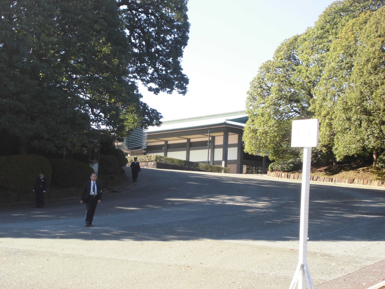 皇居の坂下門から入るとすぐ見えます。「宮殿」と言う看板があるからすぐにわかりました。言うまでもありませんが警備の人たちがたくさんいるので遠目からの拝見です。親天皇が即位し、主は変わりましたが建物はこのまま変わらずに行くのでしょう。