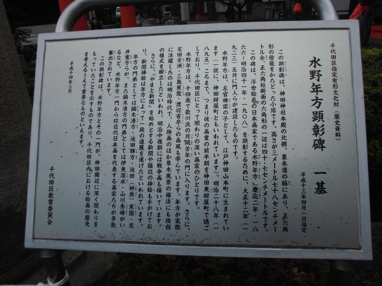 神田明神の中にあり、御茶ノ水からだと最も奥の方にあります。水野年方は明治時代の画家で、ここに来るまでは全く知りませんでした。しかし新聞や雑誌の挿絵を担当し、水野が大きく挿絵を飛躍させたというほどの人物だそうで、そういう人物を知ることができてよかったです。