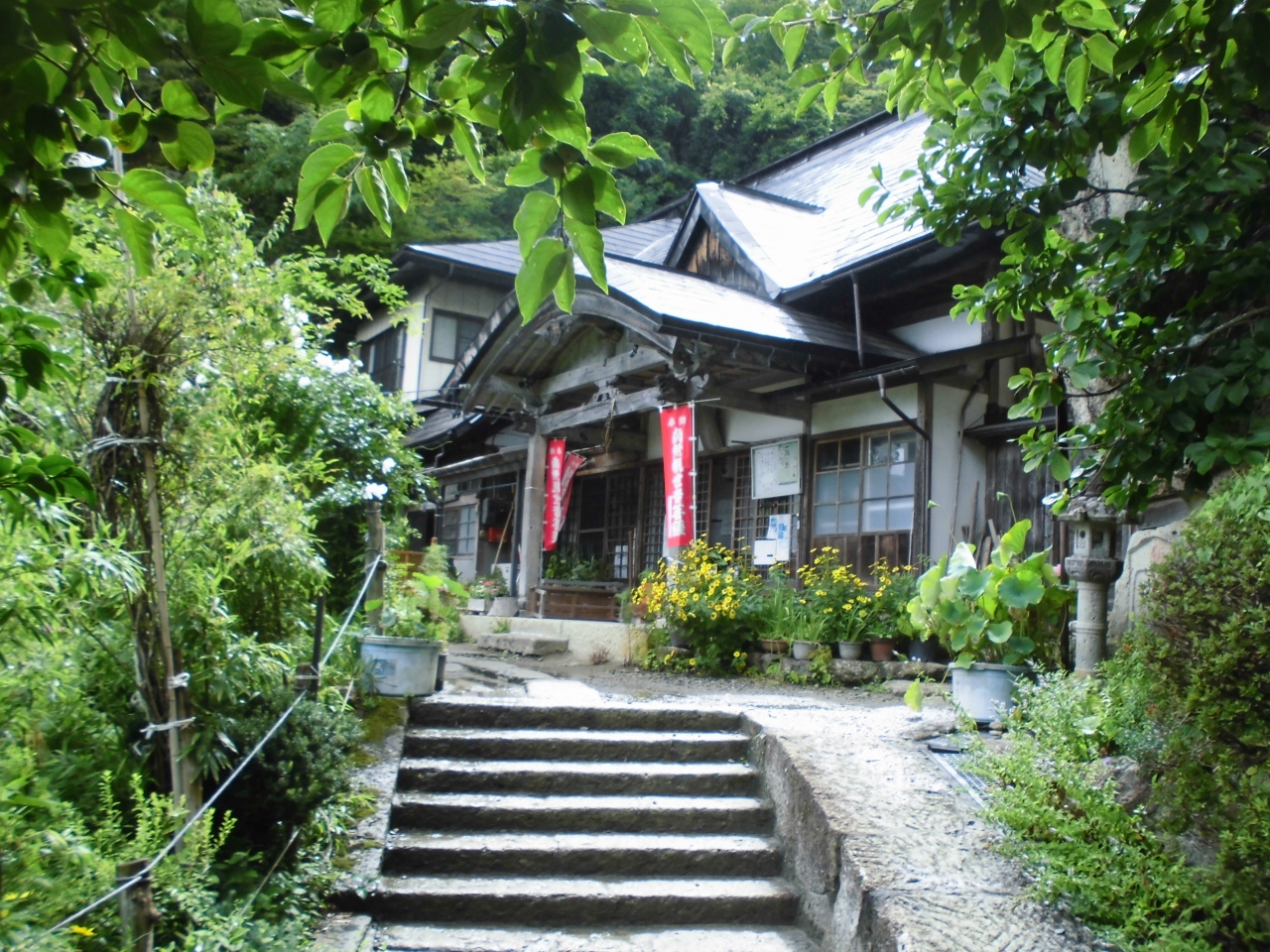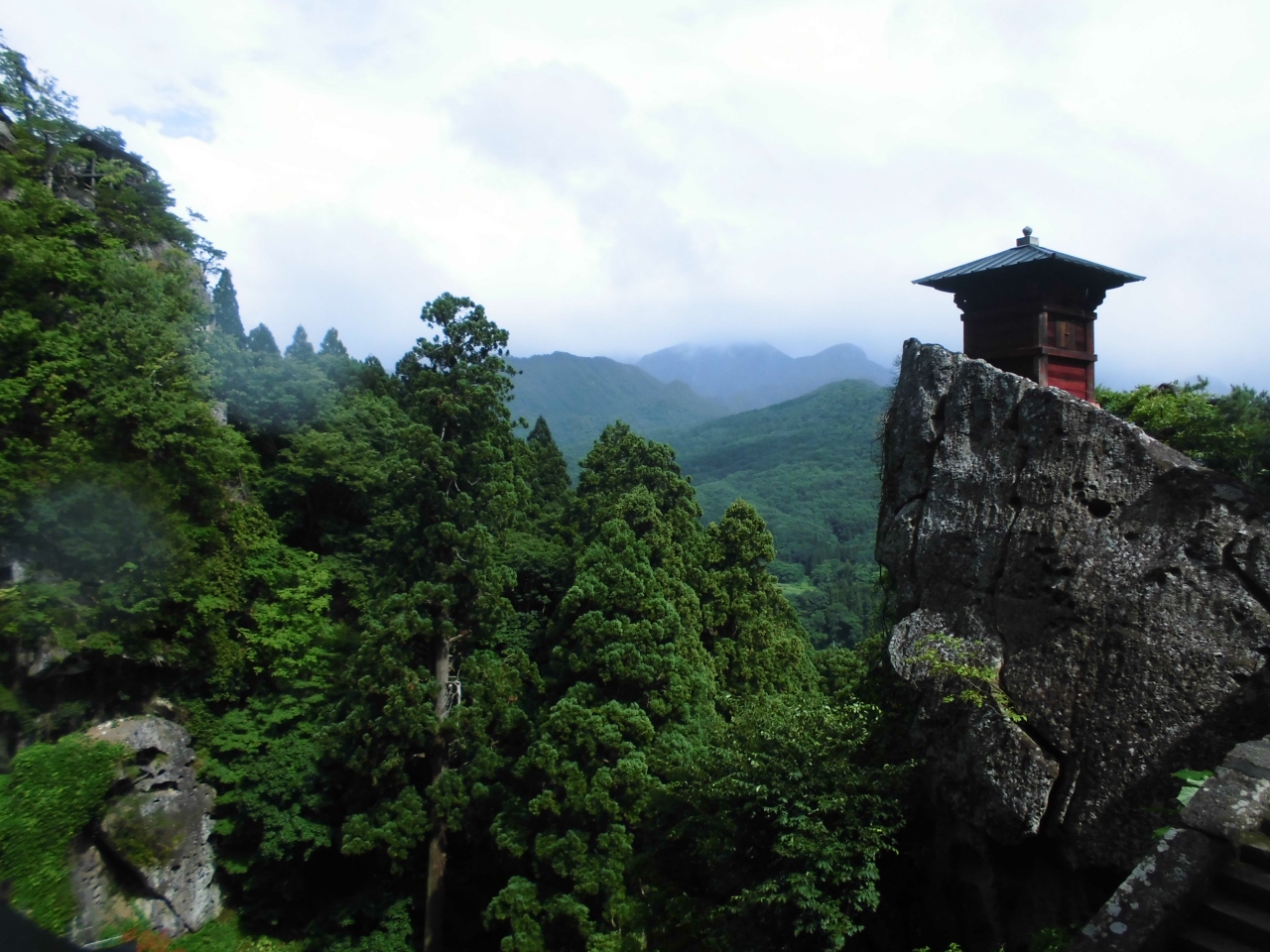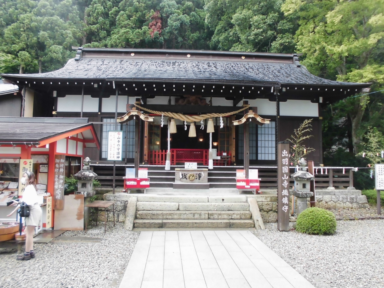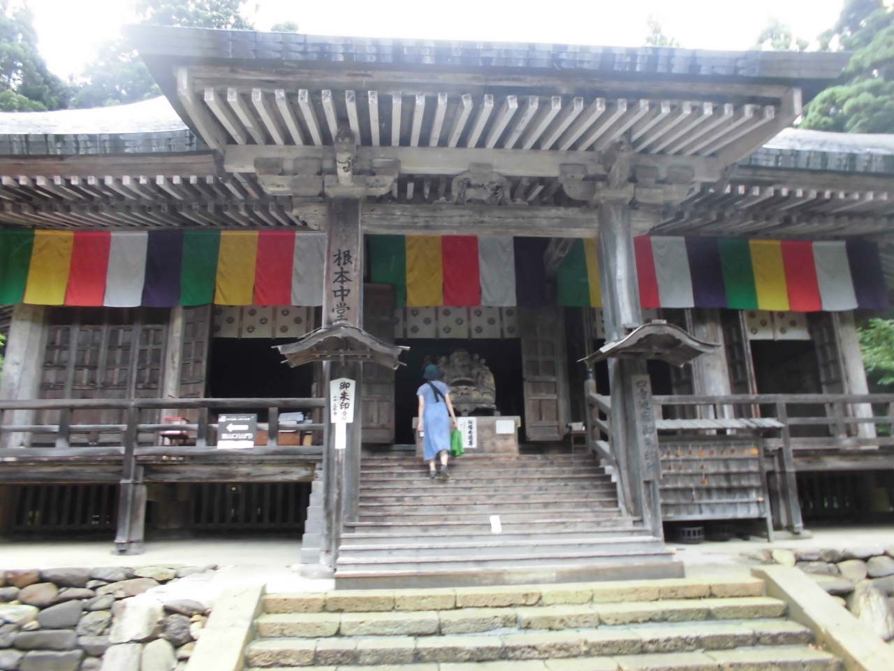 山寺の一番大きい建物です。山寺というと山の上に寺があるというイメージがあると思います。実際に山の上にも寺院はありますが、こちらは地上にあり駅からも近いので参拝しやすかったです。5色の布がかかっていたのが印象的でした。