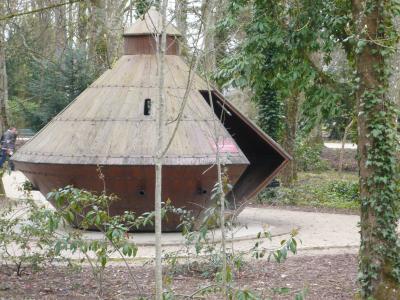 彼の発明品や創作品、絵画やデッサンが自然の中に