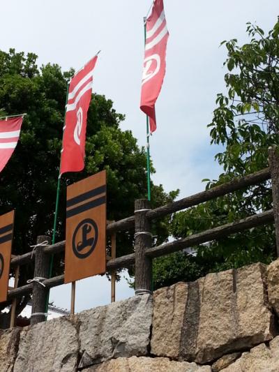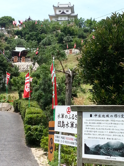 村上水軍の旗が赤くはためく様子は 下から見上げるととてもさまになっています