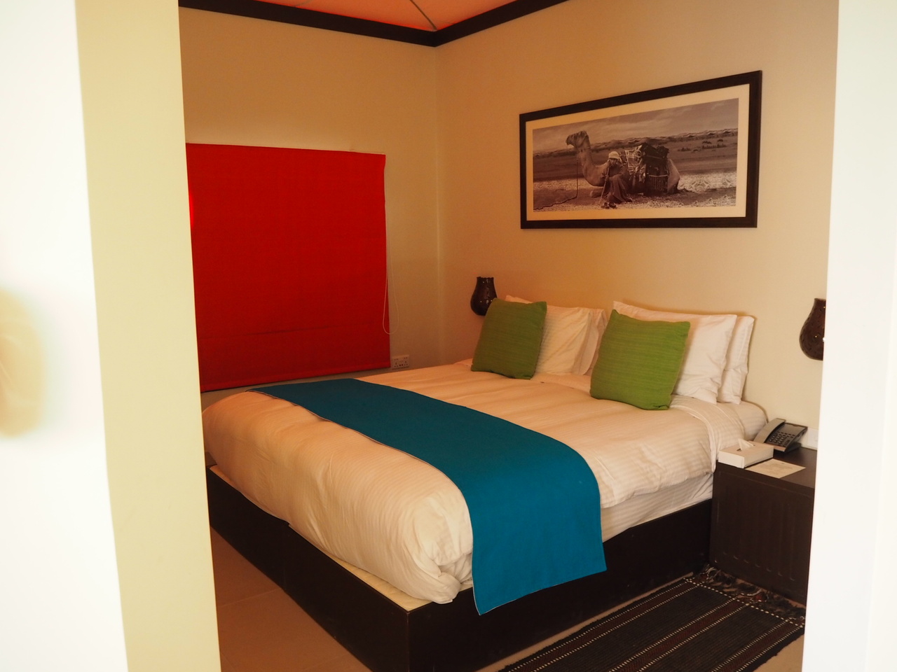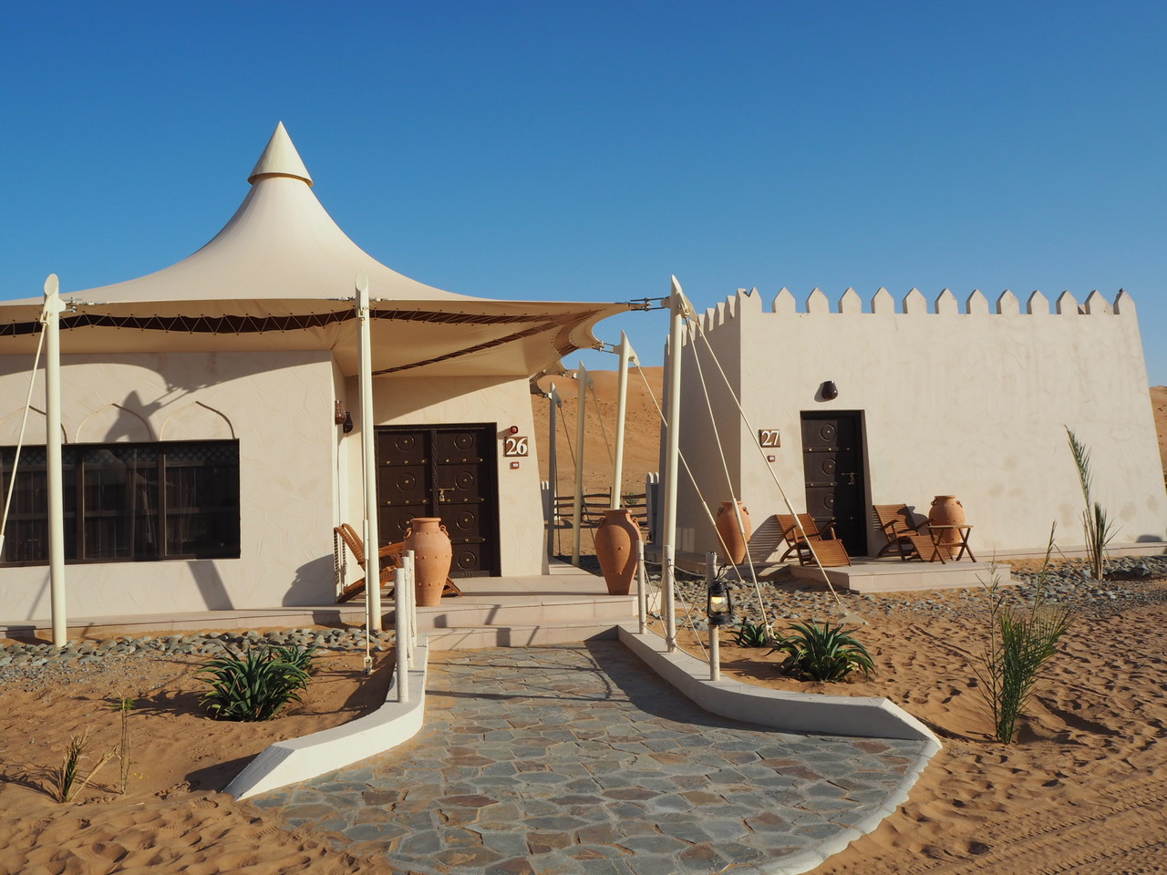 砂漠の中にあるホテルで、コテージのような部屋に宿泊。砂漠の中といえども五つ星なので設備はちゃんとしていてきれいです。マスカットから、有料の車送迎もあるので便利でした。また、朝夕のご飯もついているので、ホテルステイを満喫できます。砂漠からみる夕日や朝日は別格です。