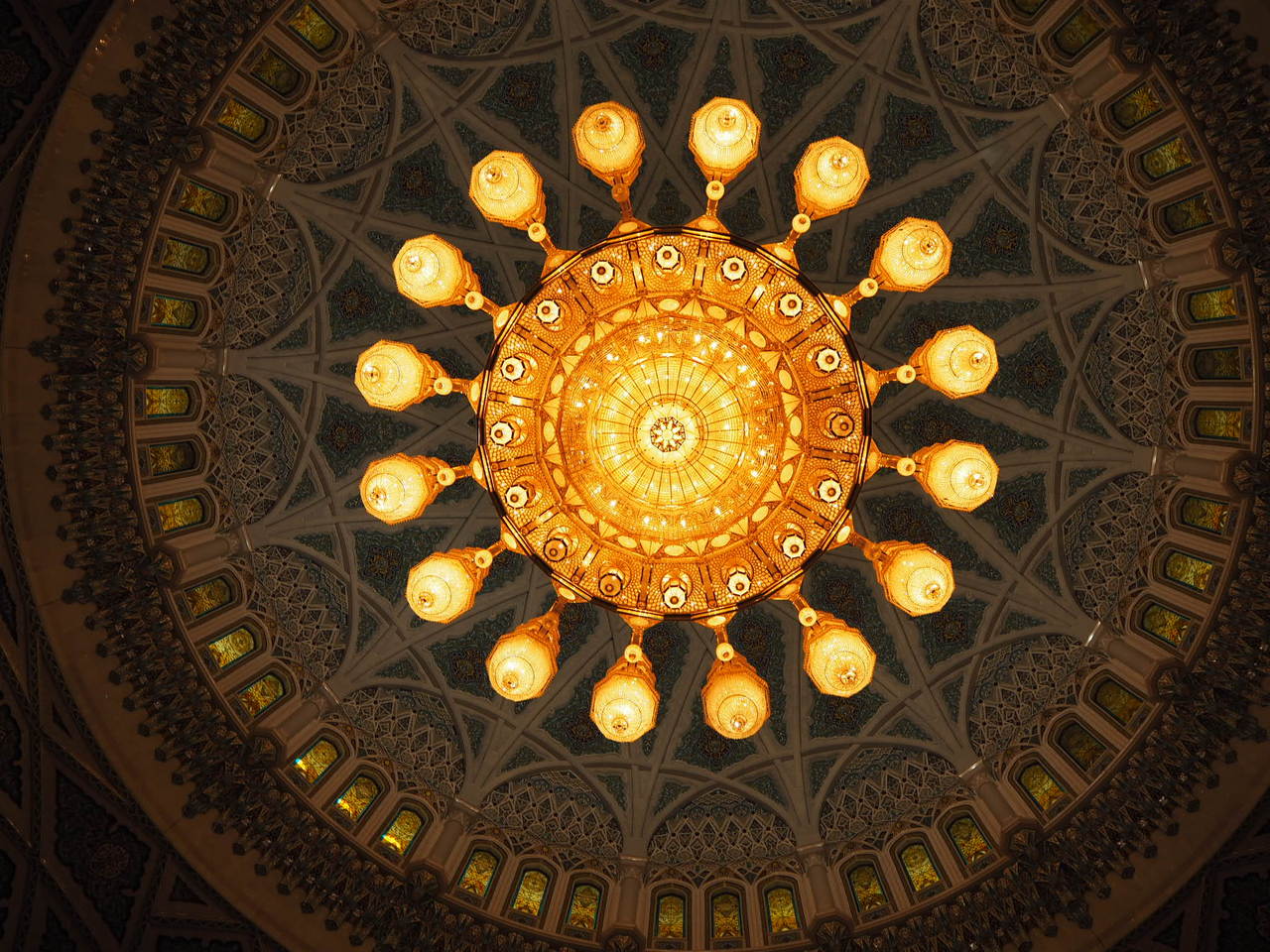 オマーンで一番大きなモスク。本当にきれいなモスクでした。男性用の礼拝所にあるシャンデリアはスワロフスキー製で世界で2番目の大きさだそうです。大きさもですが、とてもきれいなのでうっとりしてしまいます。モスクの敷地はどこも掃除が行き届いていて本当にきれいでした。女性はスカーフが必須です。